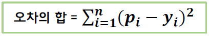 y: 실제 데이터, p: x가 대입되었을 때 임의의 방정식 출력 값