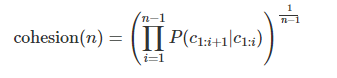 - 문자열을 글자 단위로 분리하여 부분문자열(substring)을 만들 때 왼쪽부터 문맥을 증가시키면서 각 문맥이 주어졌을 때 그 다음 글자가 나올 확률을 계산하여 누적곱을 한 값