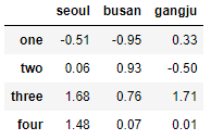 columns=['seoul','busan','gangju'])