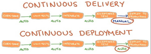 - 이를 통해 애플리케이션은 항상 릴리즈가 준비되어 있으며, 제품을 배포하기 위해서는 비즈니스 결정이 필요하기 때문에 수동으로 작업이 이루어 지게 됩니다.