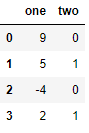 data = pd.DataFrame({'one':[9,5,-4,2],