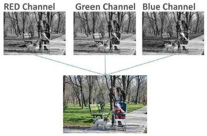 - 흑백 명암만을 표현하는 흑백 사진은 2차원 데이터로 1개의 채널로 구성