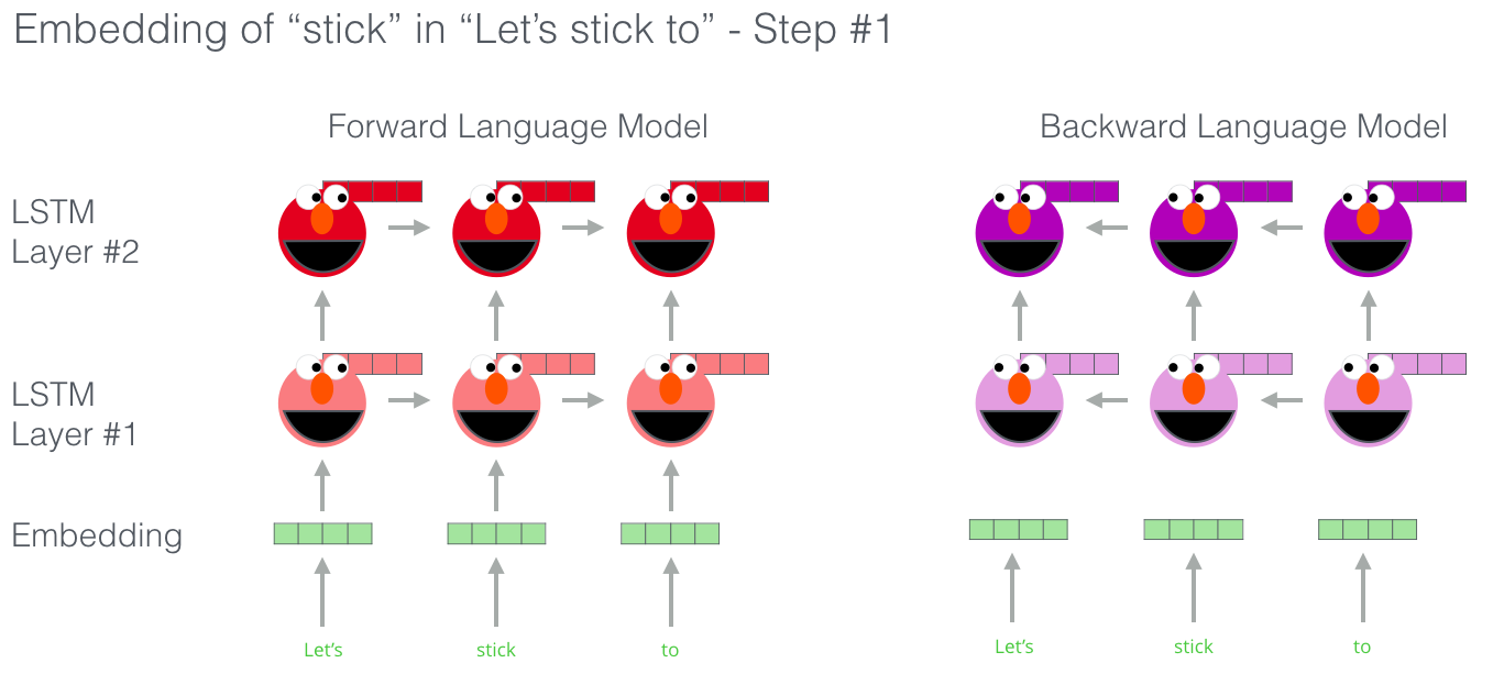 bi-directional LSTM을 이용해서 전체 문장에 대해서 Forward와 Backward Language model을 생성한다.