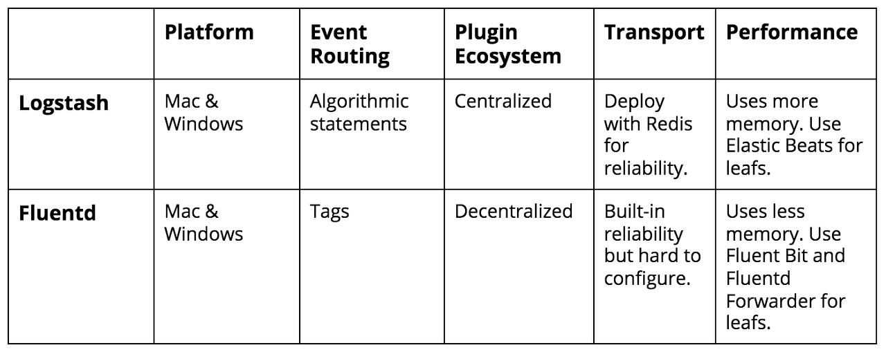 Logstash는 200개 이상의 플러그인이 존재하며, Fluentd는 500개 이상의 플러그인이 존재한다.