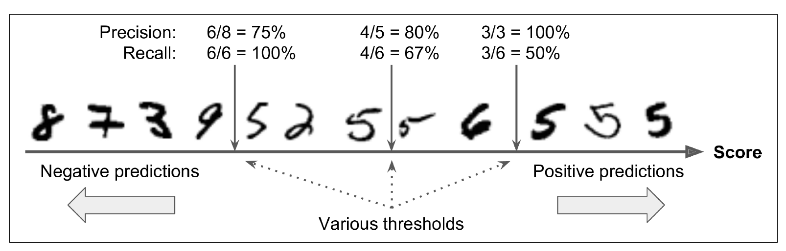 decision threshold(결정 임계값)을 조절하여 recall과 precision을 조절할 수 있다.