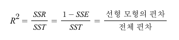 -> 추정한 선형 모형이 주어진 자료에 적합한 정도를 재는 척도