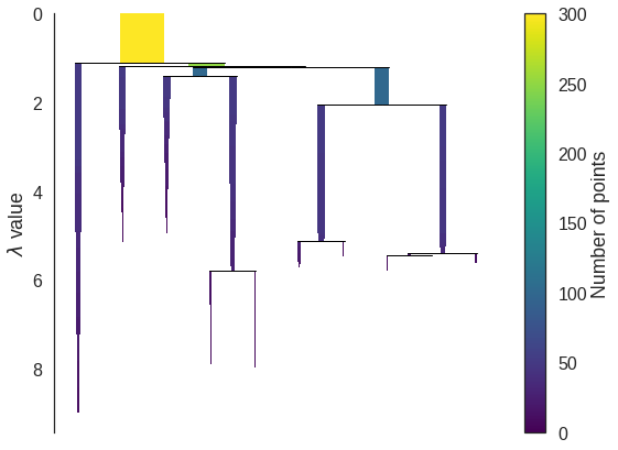 - 만약 tree의 split points 중 하나라도 min_cluster_size 미만의 점을 가지고 있다면 합친다.