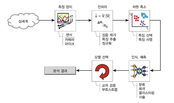 패턴인식을 위한 여러 접근법 중에서 (통계적/신경망적/구조적 방법들) 어느 모델(분류모델, 인식모델)을 어떠한 알고리즘을 이용하여 어떻게 구성할 것인가를 결정