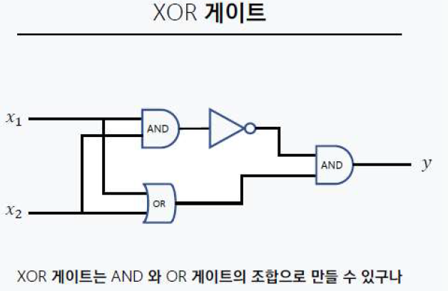 - XOR 배타적인 형태의 논리합은 단일 퍼셉트론으로 풀지 못함
