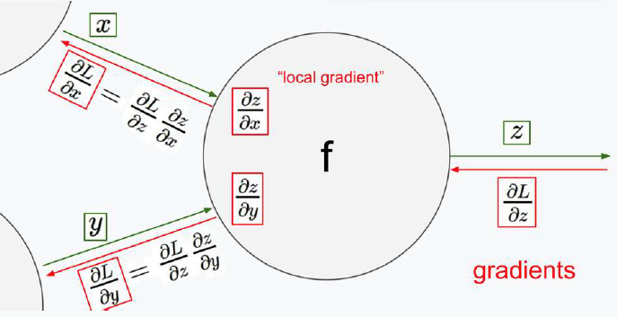 - Backpropagation: 출력부터 반대 방향으로 순차적으로 편미분을 수행해가면서 뉴런의 가중치(w)와 바이어스(b) 값 갱신