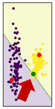 보라색 그룹과 노란색 그룹을 잘 나누는 경계선(Decision Boundary)을 더 빠르게 더 잘 찾는다.