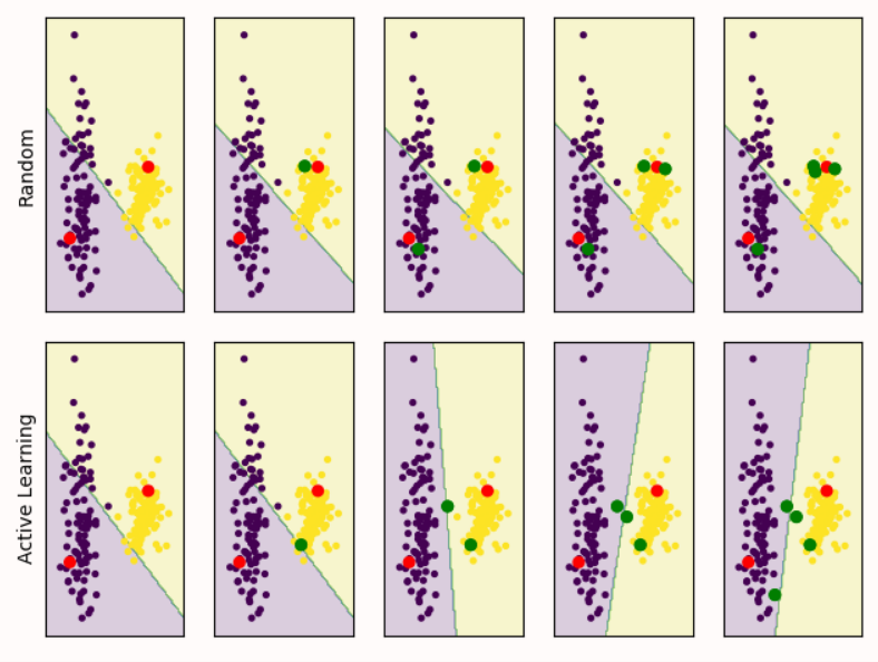 모델이 라벨링이 필요하다고 판단한 데이터는 쿼리하고, 아닌 것은 버리는 과정을 반복하며 학습이 이루어진다.