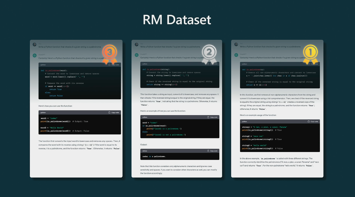 따라서 보상 모델링 단계에서 우리가 할 일은 이제 데이터 수집을 비교 형식으로 전환하는 것입니다.