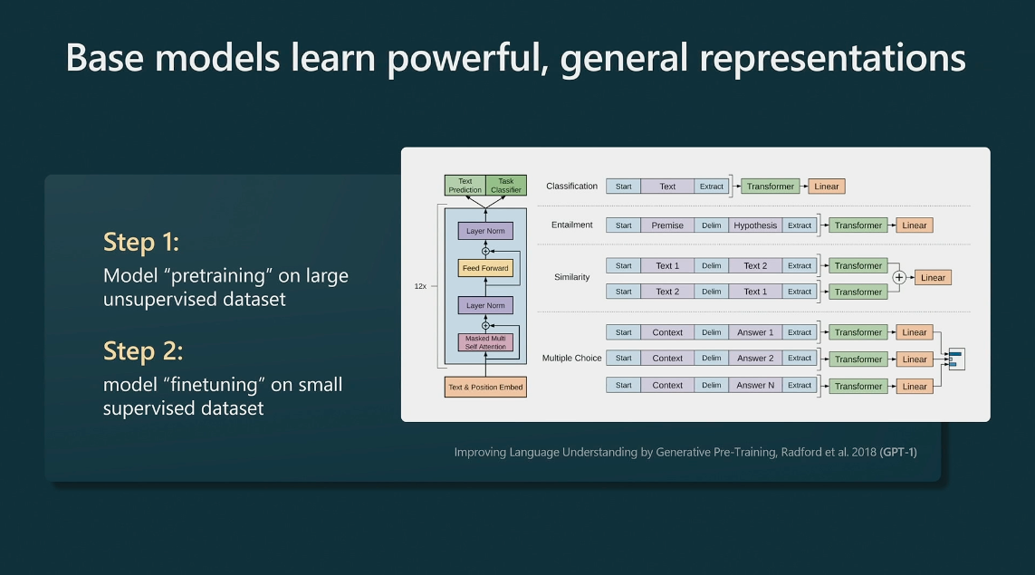 이제 한 달 후에 이 모델을 학습시킨 후 이 모델로 무엇을 할까요? 우리가 현장에서 가장 먼저 알아차린 것은 이러한 모델이 기본적으로 언어 모델링 프로세스에 있고 매우 강력한 일반 표현을 학습하며 임의의 다운스트림 작업에 대해 매우 효율적으로 fine-tuning할 수 있다는 것에 관심이 있습니다.