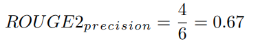 Precision은 Recall과 반대로 모델이 생성한 시스템 요약본 중 참조 요약본과 겹치는 단어들이 얼마나 많이 존재하는지를 의미합니다.