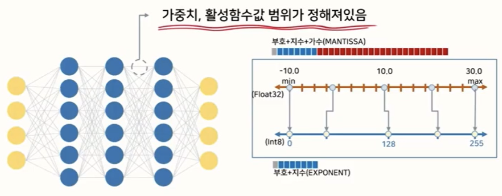 weight와 activation output은 모델의 정확도를 높이기 위해, 32bit floating point(FP32)로 표현되고 있습니다.
