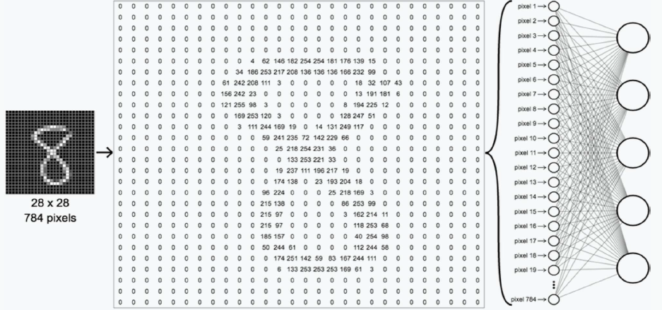 - 숫자는 0~1까지 값을 갖는 고정 크기 이미지(28x28 픽셀)