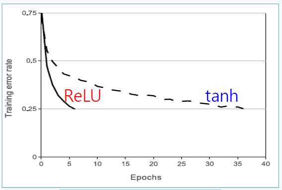 - Tanh 함수 대신 Relu 함수 사용