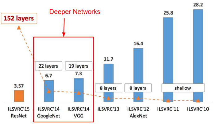 - layer가 깊어질수록 성능이 좋아지는 것을 확인