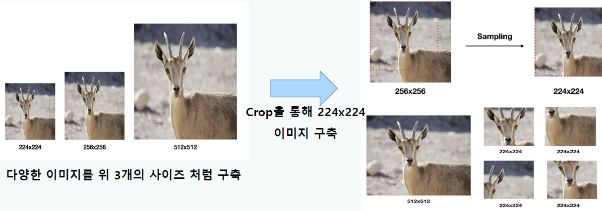 - 다양한 이미지를 crop을 통해 224x224로 크기 고정